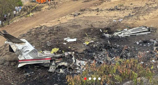 While approaching Baramati, the crew was advised to descend in Visual Meteorological Conditions at the pilot's discretion. The crew enquired about the winds and visibility and they were informed that the winds were calm and the visibility was around 3 km. The crew then reported on final approach to runway 11 but as the runway was not in sight, the crew initiated a go-around. After this, the crew was asked about their position and they again reported on final approach to runway 11. During this second attempt to land, the crew reported that runway was currently not in sight. A few seconds later, the crew reported that the runway was in sight and they were cleared to land. The crew did not acknowledge this clearance and the airplane crashed about a minute later, short of runway 11, bursting into flames. The burned wreckage was found down an embankment of 8-10 meters high located short of runway 11. There were no survivers. |