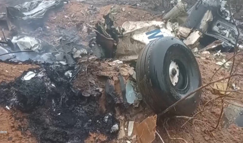 The military aircraft was flying at 24,000 feet when images show the plane broke apart with the tail section separating in-flight before entering an uncontrolled descent and crashing to the ground.