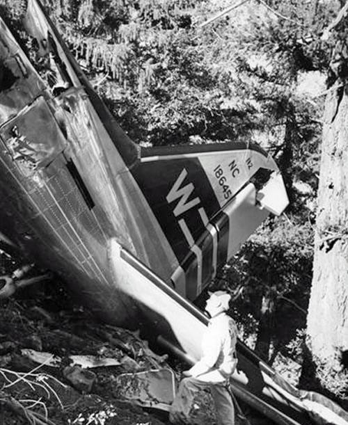 The aircraft crashed into White Mountain at an elevation of 6,000 feet, in rain and 70 mph winds after being blown off course while on a heading from Palmdale to Newhall. Possible downdraft. |