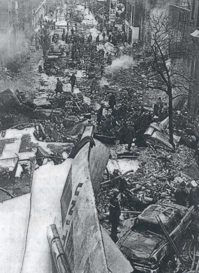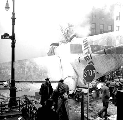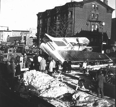 | The wreckage of a United Air Lines DC-8 that crashed into the streets of Brooklyn, New York after colliding with a TWA Super Constellation over Staten Island in 1960. The last picture is of the TWA Constellation at Miller Army Field in Staten Island. The accident occurred after DC-8 flew past its holding pattern at twice the speed it was authorized to go. |