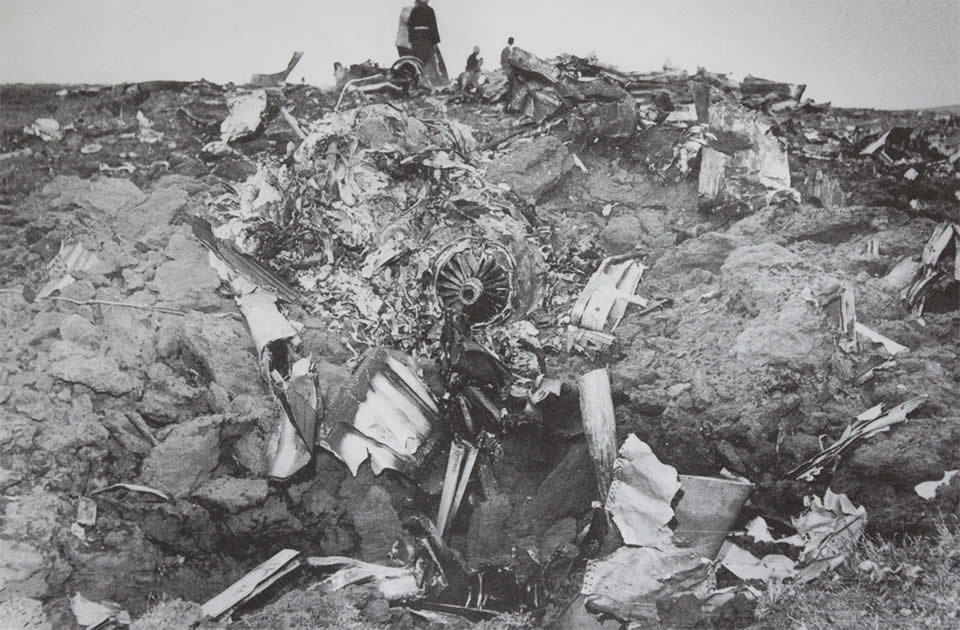 This is what's left of Pacific Air Lines Flight 773 after a passenger, Francisco Gonzales shot both pilots causing the plane to go into a dive and crash. |