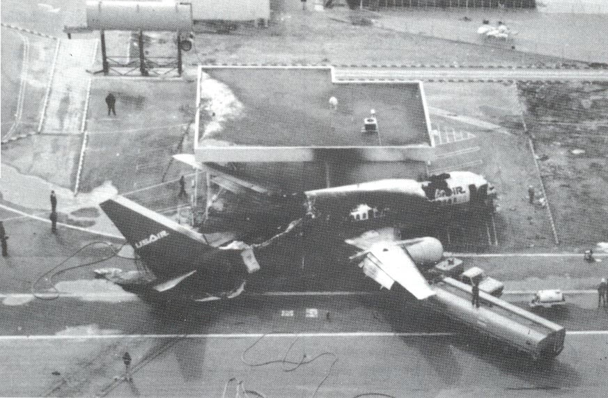 The Skywest Metroliner was told to taxi into position for takeoff and hold. The ATC became preoccupied with another aircraft that departed the tower frequency. A Wings West aircraft reporting "ready for takeoff", caused some confusion because the controller didn't have a flight progress strip in front of her. The strip appeared to have been misfiled at the clearance delivery position. The USAir, which was cleared to land, landed on top of the Metroliner. After the collision, both planes slid off the runway into an unoccupied fire station and burst into flames. |