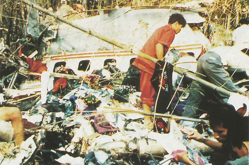Lauda Air Flight 004 crashed into the jungles of Thailand after the No. 1 thrust reverser inadvertently deployed while the aircraft was at 31,000 feet causing the plane to plunge to the ground. |