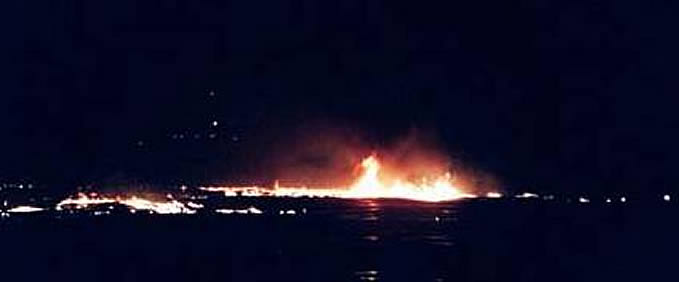 The wreckage and fuel from TWA Flight 800 burns in the Atlantic off East Moriches, New York. All 230 people aboard the Boing 747 perished in the crash after the center fuel tank exploded. |