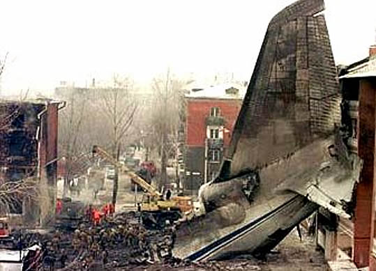 The military jetcrashed into a residential neighborhood twenty seconds after taking off. All four engines failed after the computer system began shutting them down shortly after takeoff. A design flaw led to the uncoordinated operation of the high-pressure compressors. |