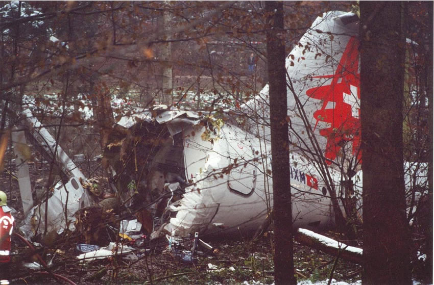 The aircraft was flying through a mix of rain and snow on final approach, when it crashed in a wooded area. American pop singer, Melanie Thornton, 34, killed. Maria Serano Serano and Nathaly van het Ende both 27, and members of the pop-music trio, Passion Fruit, also killed. |