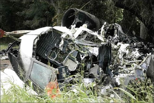 The crew took off from the wrong and too short a runway, ran through the airport perimeter fence and impacted trees on an adjacent horse farm and burst into flames. The copilot was the only survivor. |